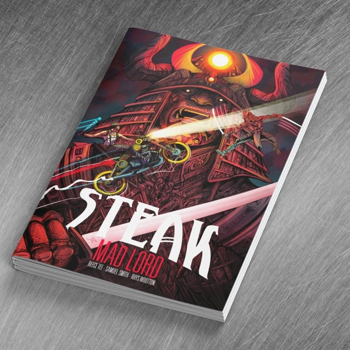 This comic book, illustrated by Rhys Wootton and written by Samuel Smith. Brings together STEAK’s long established, post-apocalyptic world and the samurai world of the MAD LORD film. @rhyswootton